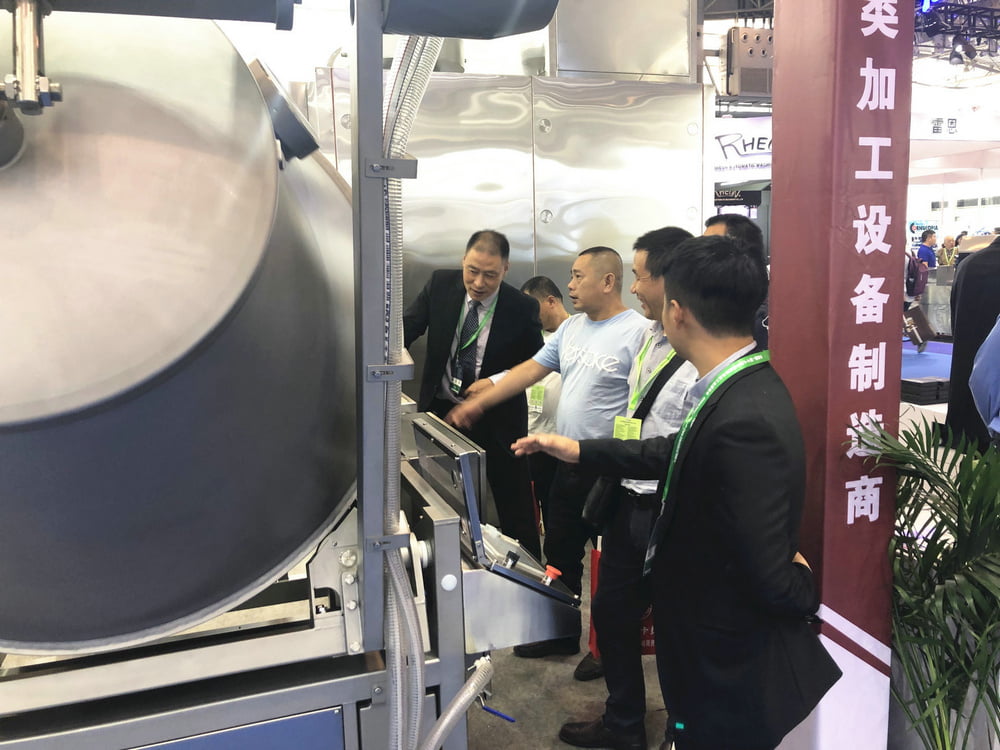 2019年9月26日,第十七屆中國國際肉類工業(yè)展覽會在成都世紀(jì)城新國際會展中心隆重舉行,我司攜新品設(shè)備參展,展出設(shè)備有:智能集熱式煙熏爐,液熏噴霧器,真空滾揉機,全自動肉車清洗機,發(fā)(卸)貨臂,三層分割輸送線,軌道線,熱收縮機,智能包裝成套設(shè)備等。