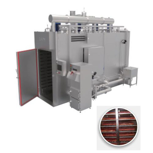 RYXS水平氣流煙熏爐具有干燥、蒸煮、煙熏、發(fā)紅等功能,適合培根、魚片、雞腿、雞翅、鴨脖子、牛肉干、腸類等懸掛和平鋪類產(chǎn)品的加工,多種熱源(蒸汽、電、燃?xì)獾龋┛蛇x。